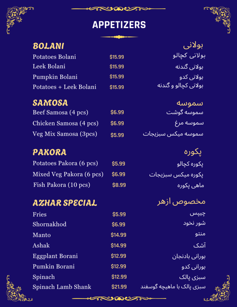 Potatoes + Leak Bolaniبولانی کچالو و گندنه$16.99