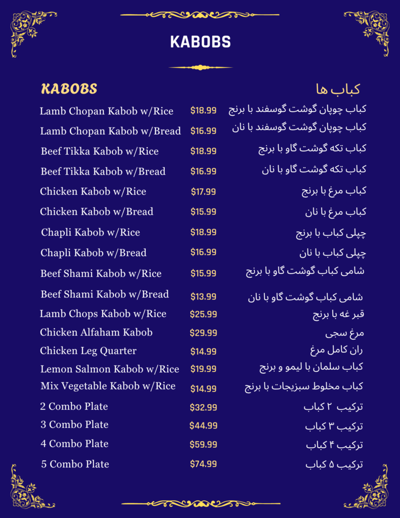 Afghan Beef Tikka Kabobکباب افغانی$15.99