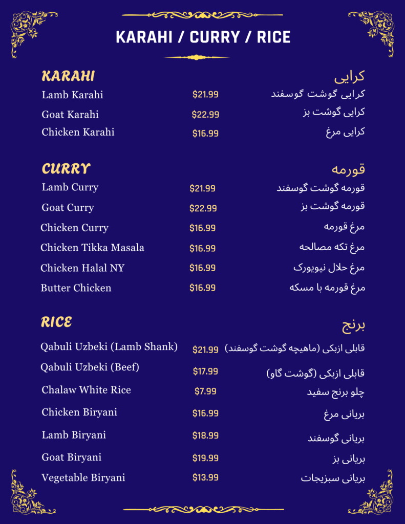 Goat Curryکری گوشت بز$15.99