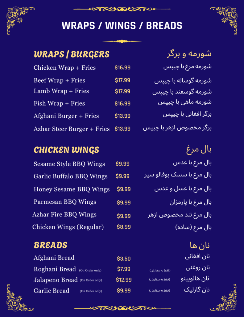 Azhar Fire BBQ Wingsبال مرغ تند مخصوص آذهر$9.99